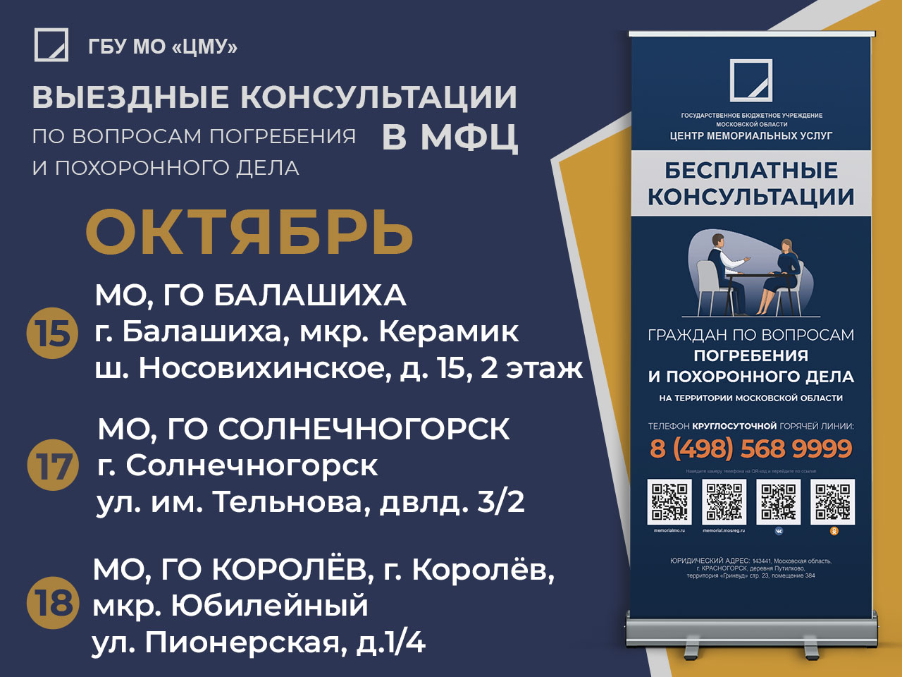 Выездные консультации в МФЦ специалистов ГБУ МО "Центр Мемориальных Услуг"